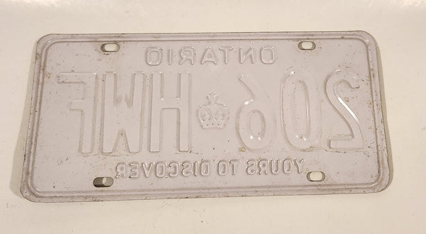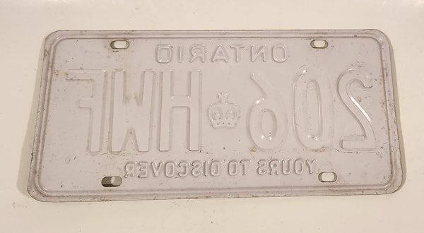 1986 to 1994 Ontario Yours To Discover White with Blue Letters Vehicle License Plate 206 HWF