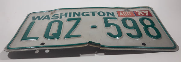 1987 Washington State White with Green Letters Vehicle License Plate Tag LQZ 598