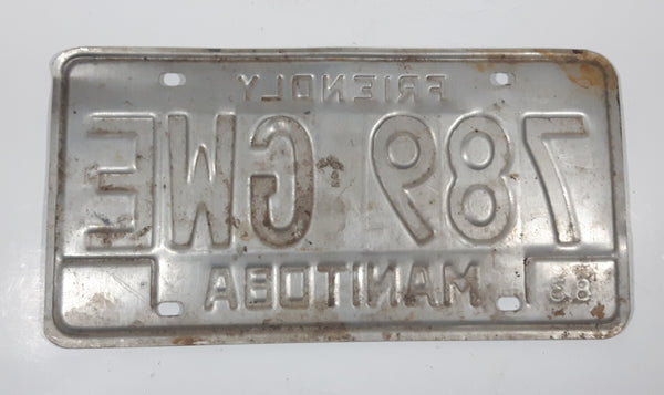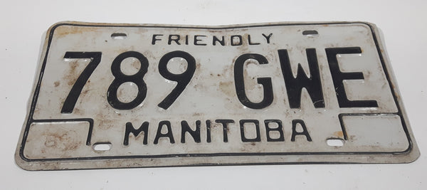 Friendly Manitoba White With Black Letters Metal Vehicle License Plate Tag 789 GWE