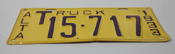 Rare Antique 1933 ALTA Alberta Truck Yellow with Blue Letter Metal Vehicle License Plate Tag