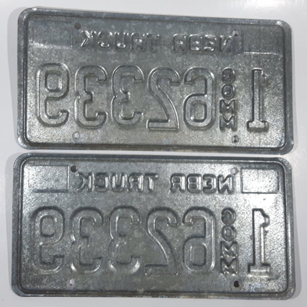 Set of 2 1996 Nebraska 3 Ton Truck Commercial White With Blue Letters Metal Vehicle License Plate Tag 1 62339