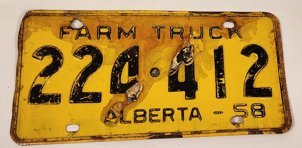 Vintage 1958 Alberta Farm Truck Black Letters Yellow Vehicle License Plate 224 412