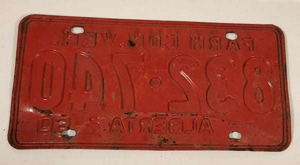 Vintage 1960 Alberta Farm Commercial Vehicle White Letters Red Vehicle License Plate 832 740