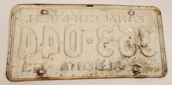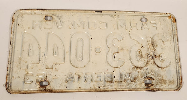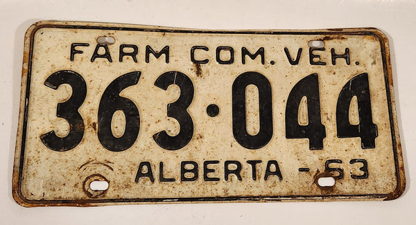 Vintage 1963 Alberta Farm Commercial Vehicle Black Letters White Vehicle License Plate 363 044