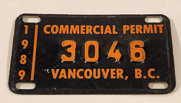 Rare Vintage 1989 Vancouver Commercial Permit Metal License Plate Tag 3046