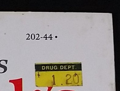 Condition: Very Fair - Minimal wear on edges, crease free, corners have some wear. The spine has very minimal wear. It as the original Drug Dept price sticker on the cover.