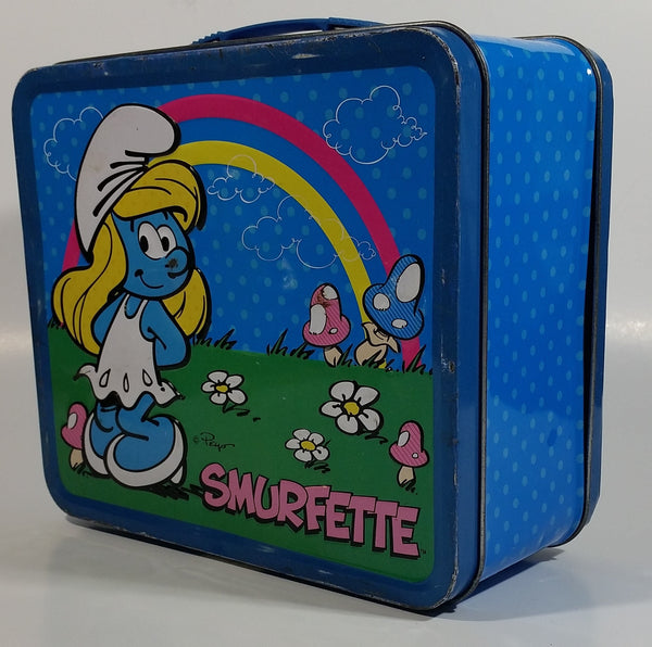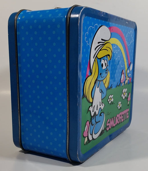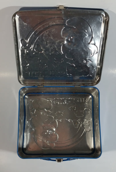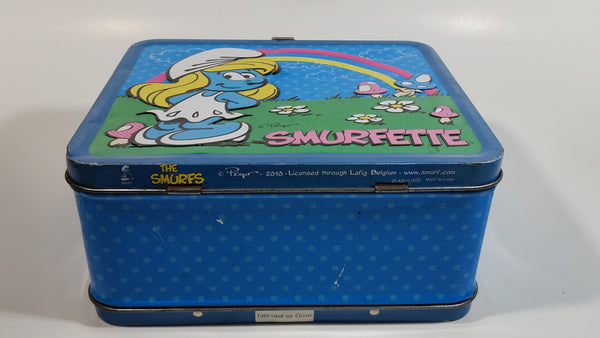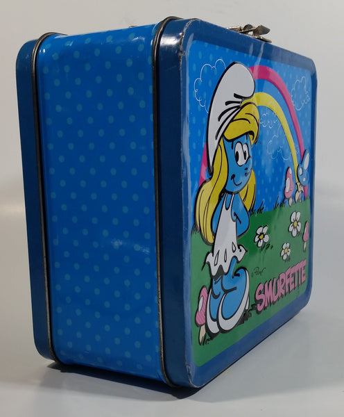 2010 Peyo The Smurfs Smurfette Blue Embossed Tin Metal Lunch Box