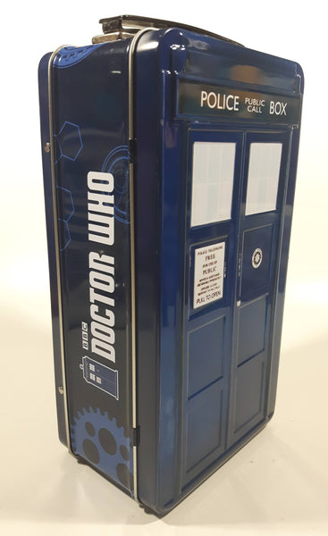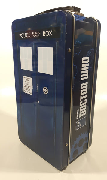 2012 BBC Doctor Who Police Public Call Box Tardis Shaped Embossed Tin Metal Lunch Box