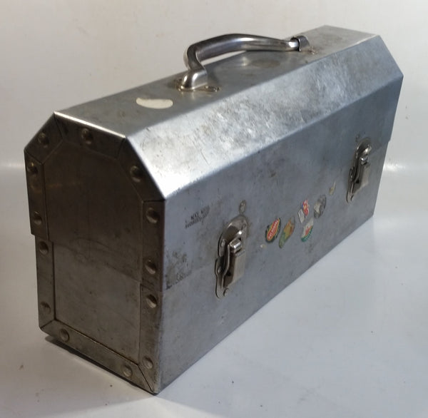 Vintage L. May Mfg Co. 14 1/2" Wide Polished Riveted Aluminum Metal Miner's Lunch Box