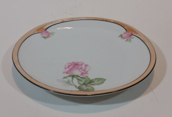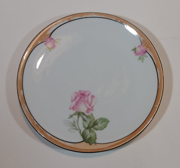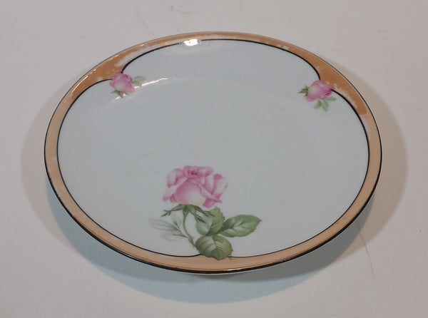 1920s German Lustreware Peach Trim Pink Floral Roses Decor 6 1/2" Plate