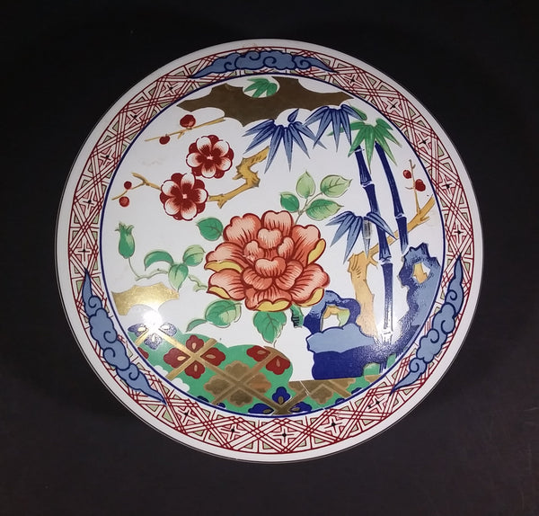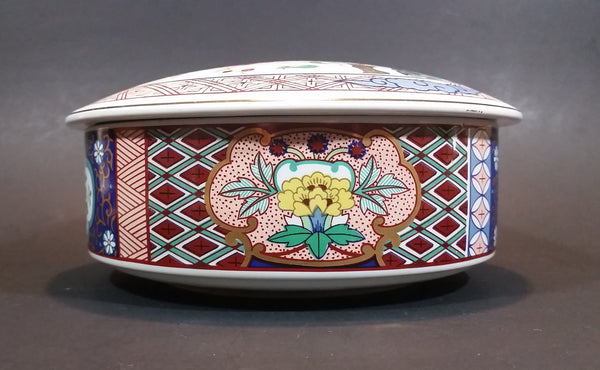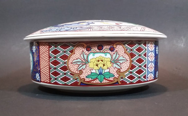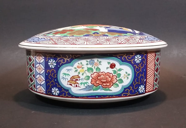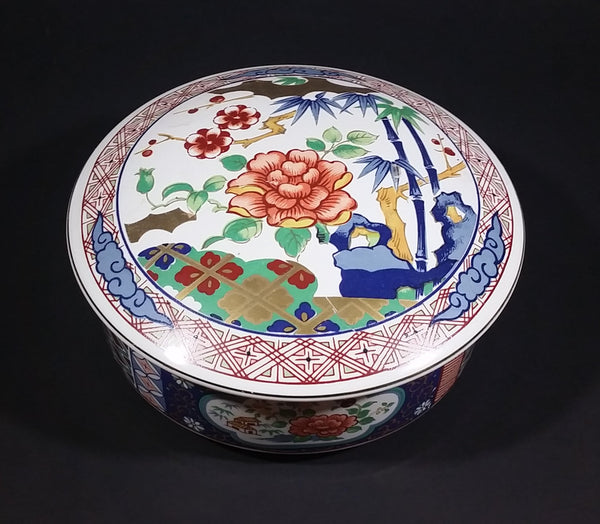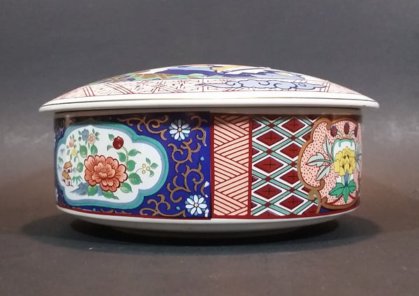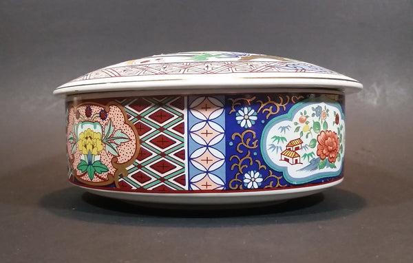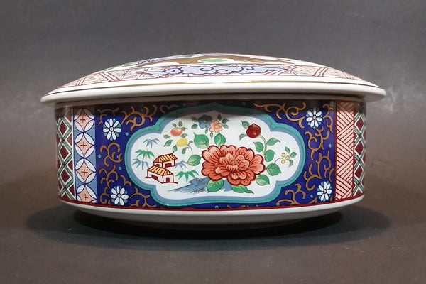 1950s Imari Ware Japan Flowers, Bamboo, and Huts Decor Porcelain Lidded Candy Dish