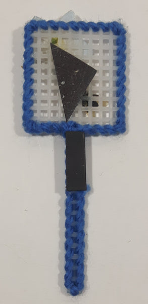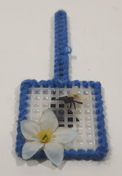 Blue Yarn Trimmed Plastic Mesh Fly Swatter with Fly and White Flower 1 3/8" x 4" Fridge Magnet