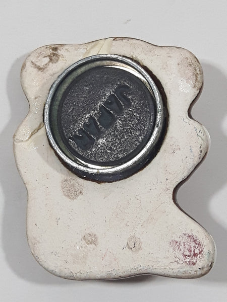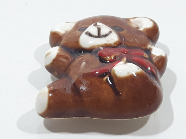 Brown Teddy Bear with Red Bow 1 1/4" x 1 3/8" Ceramic Fridge Magnet Made in Japan