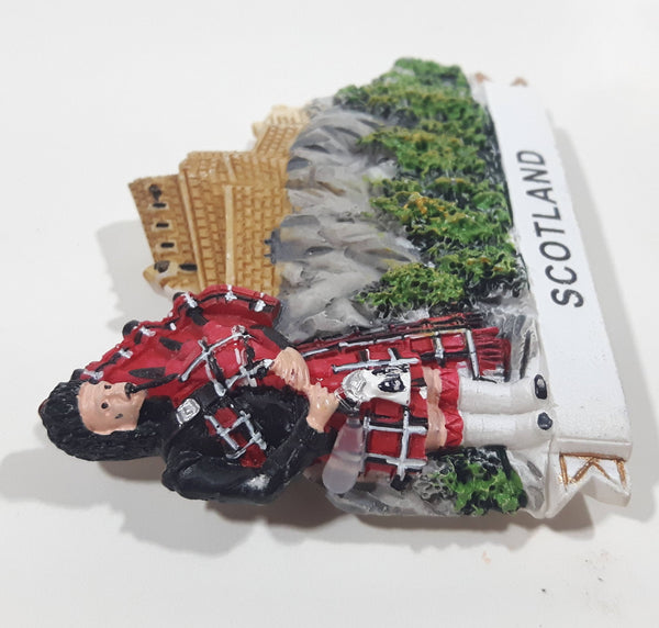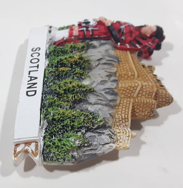 Scotland Castle and Bagpipe Player 2 1/8" x 2 5/8" 3D Resin Fridge Magnet