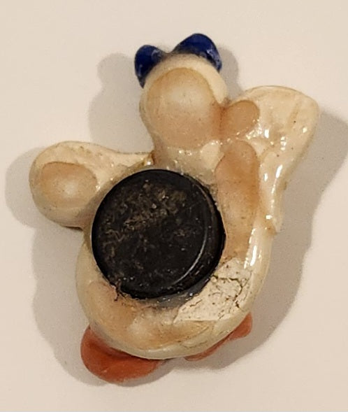 Yellow Chicken Bird with Blue Ribbon Pottery Fridge Magnet Has Repair