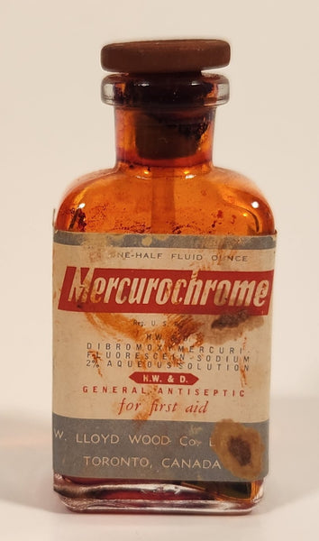 Antique W Lloyd Wood Co Toronto, Canada H. W. & D. Mercurochrome 2 1/2" Glass Bottle