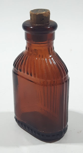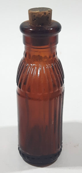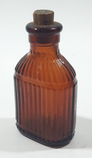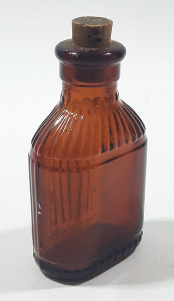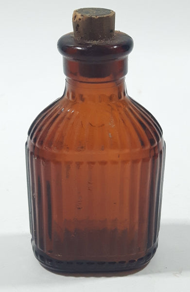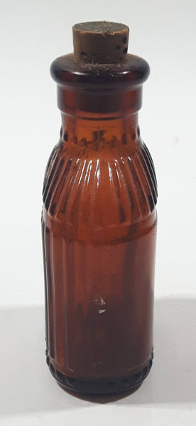 Antique S&D Medicine Drugs Miniature 3 1/4" Tall Amber Brown Glass Bottle with Cork Lid