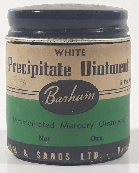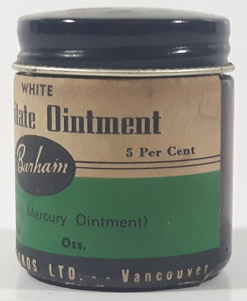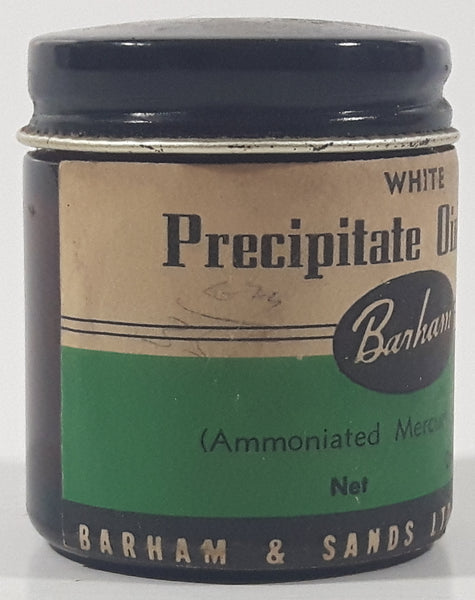 Rare Antique Barham White Precipitate Ointment 2" Tall Brown Glass Jar with Metal Lid