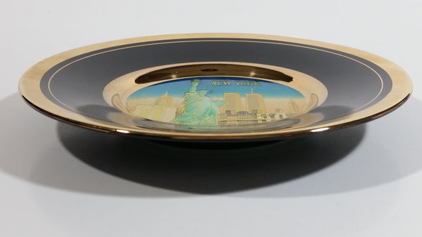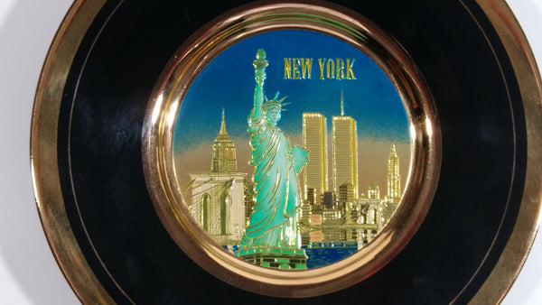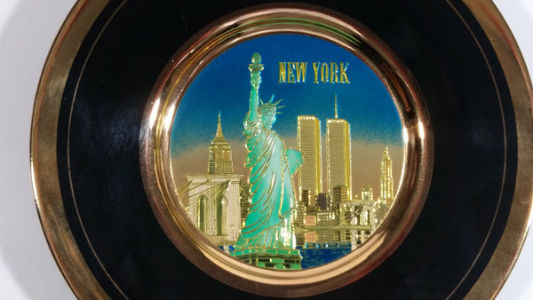 Beautiful Art of Chokin New York City, NY Statue of Liberty 24KT Gold Black Decorative Plate Tourism Collectible 6" Diameter