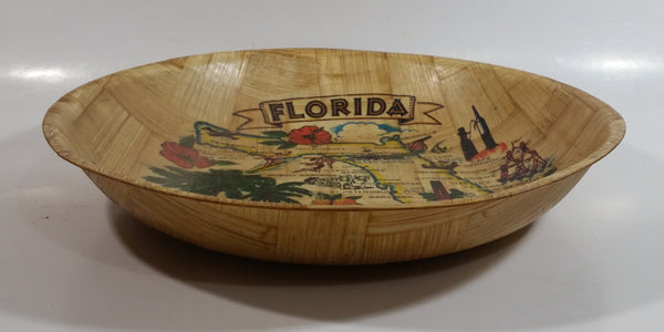 Vintage Florida State Woven Wood Wooden Bowl Souvenir Travel Collectible