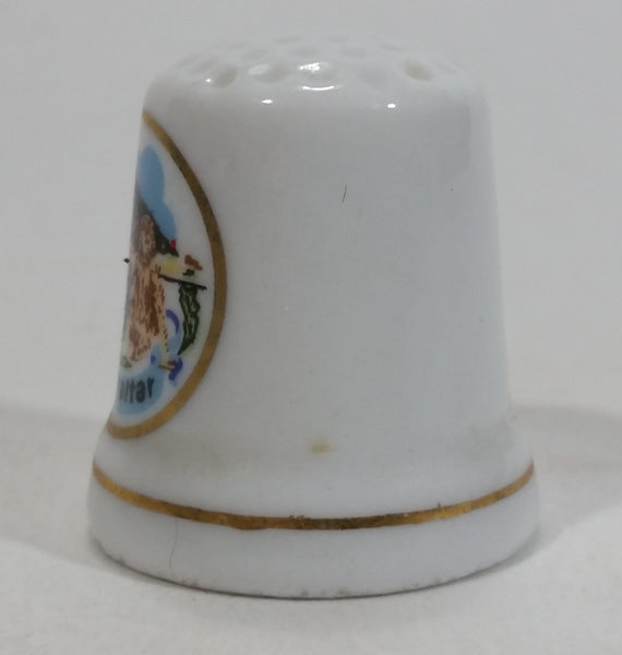 Gibraltar Porcelain Gold Trimmed White Thimble Souvenir Travel Collectible