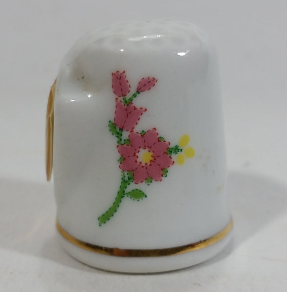 Les Îles de la Madeleine Quebec Porcelain Gold Trimmed White Thimble Souvenir Travel Collectible