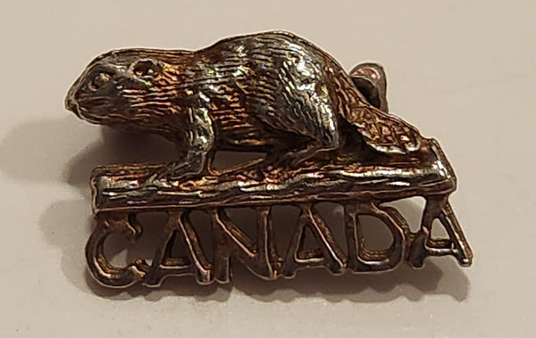 Beaver On A Log Silver Tone Metal Lapel Pin