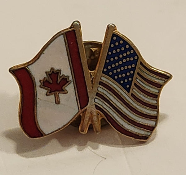 Canada and USA Waving Flags Enamel and Metal Pin