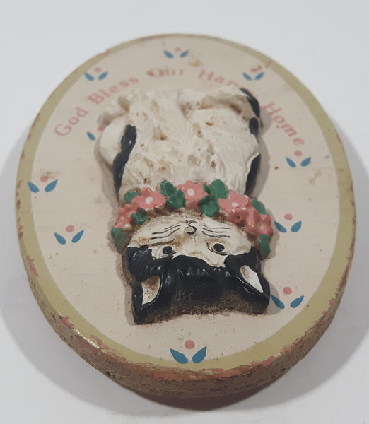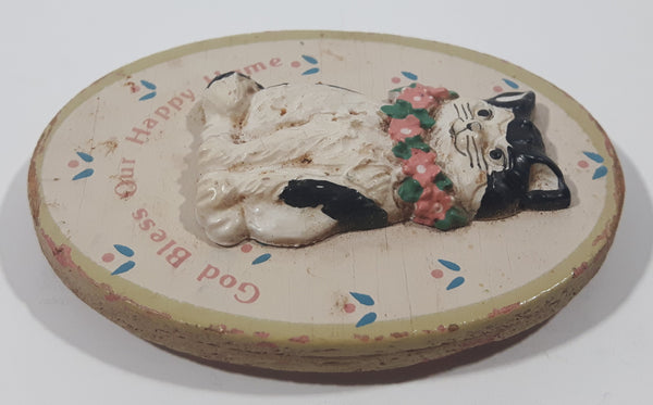 God Bless Our Happy Home Black and White Kitty Cat Themed Oval Shaped 1 3/4" x 2 1/2" Fridge Magnet