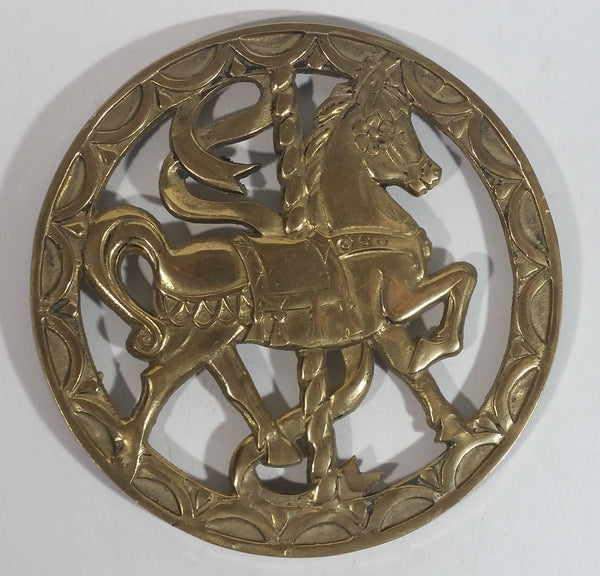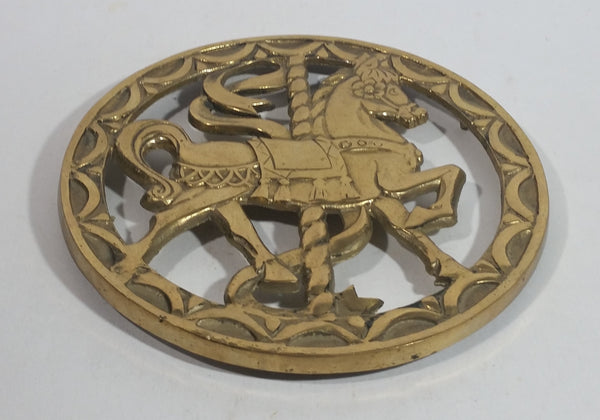 1979 Rubel Brass Carousel Horse Hot Pot Plate Holder Metalware Tableware Collectible