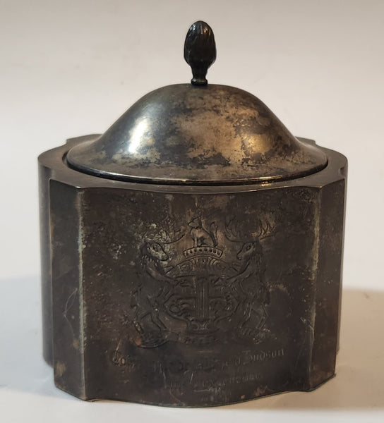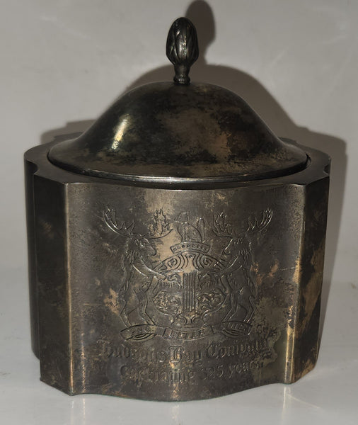 1995 Hudson's Bay Company Celebrating 325 Years Commemorative Silver Plated Zinc Tea Caddy with Red Velvet Lining