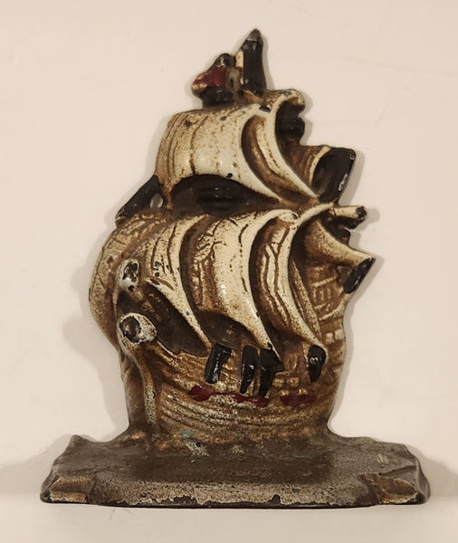 Antique 1920s Clipper Ship Hand Painted Distressed 4" Tall Heavy Metal Cast Iron Book End