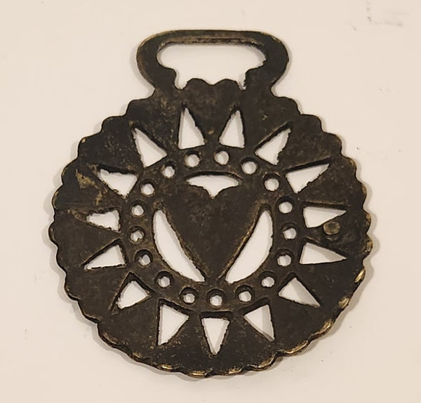 Antique Heart Themed Horse Brass Medallion 3" x 3 1/2"