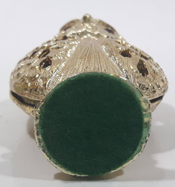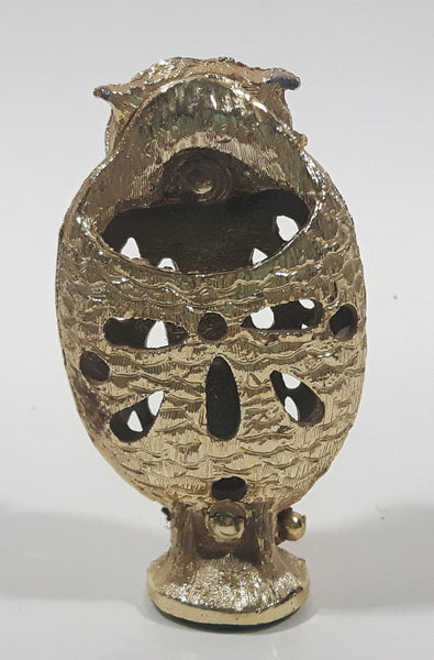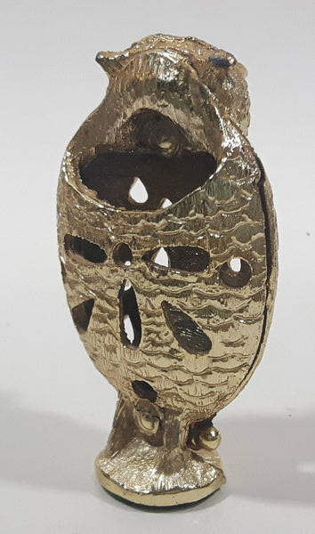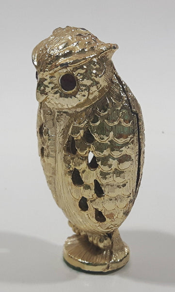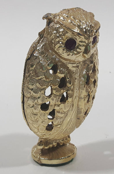 Gold Tone Metal 3" Tall Owl Figure with Dark Pink Rhinestone Eyes