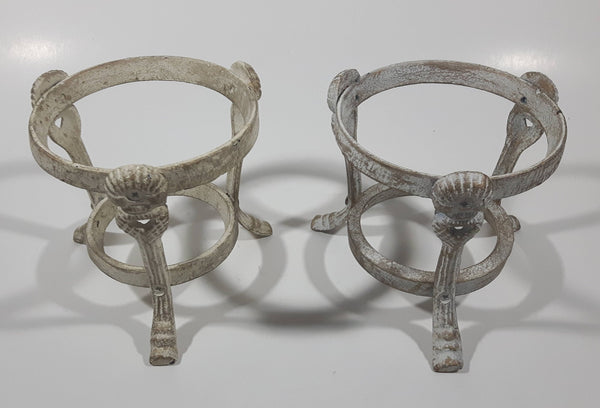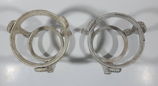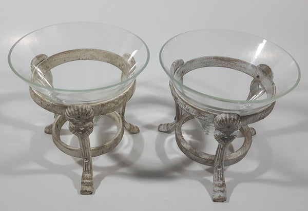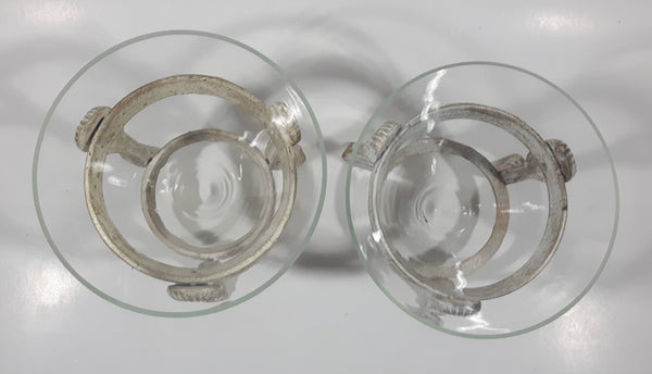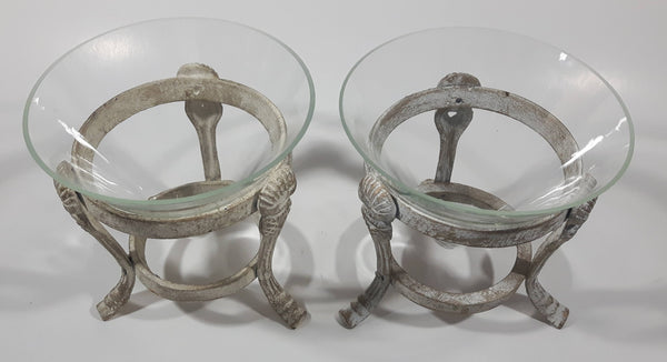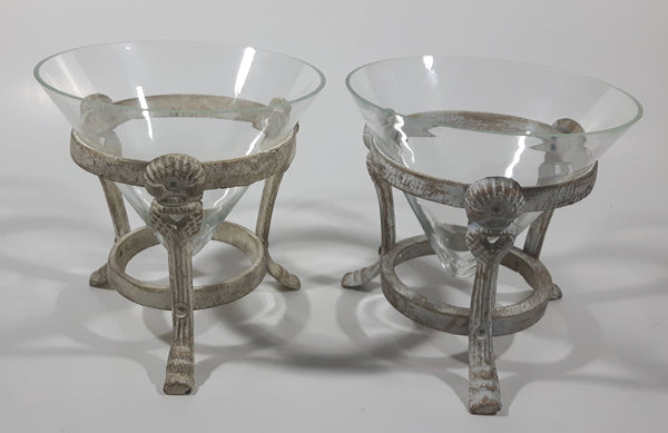 Ornate Metal Footed Base Cone Glass Candle Holder 5 1/4" Tall Set of 2