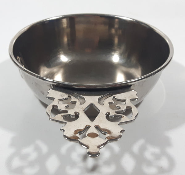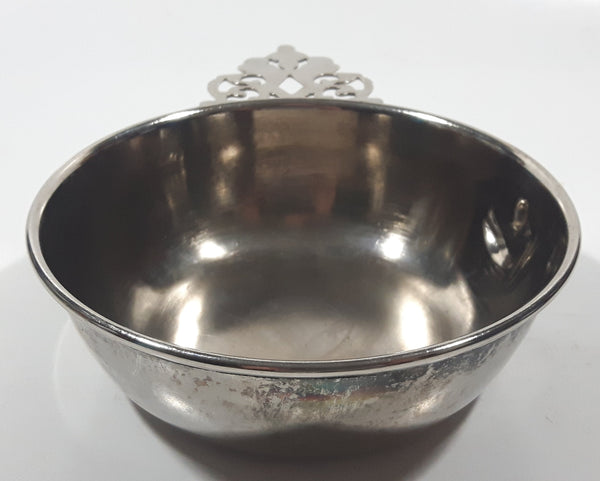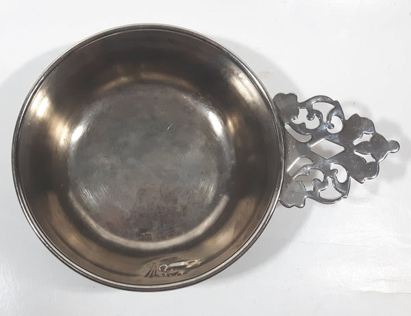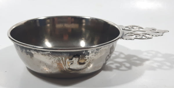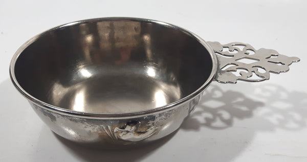 Antique Embossed Duck Pattern Single Handle Silver Metal Porringer Pottinger Bowl