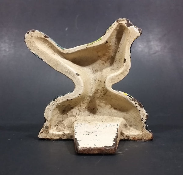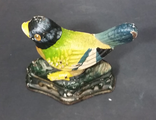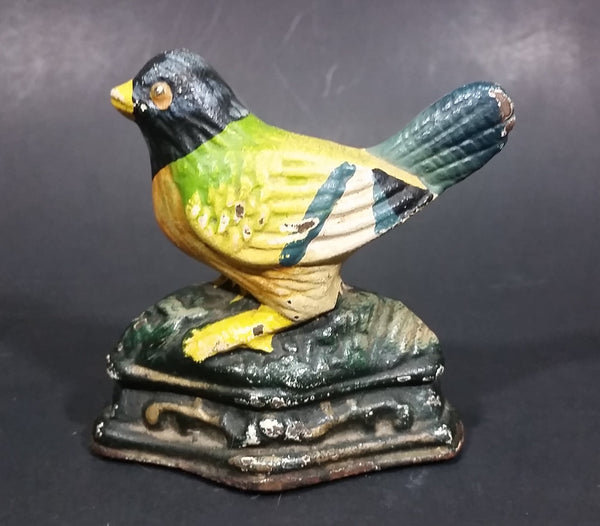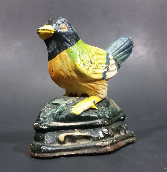 Antique Metalware Cast Iron Painted Yellow and Green Black Headed Song Bird Door Stop