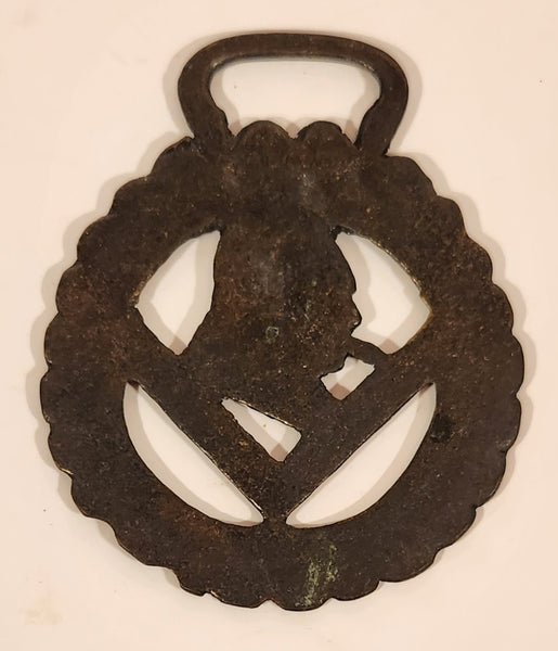 Antique Winston Churchill Themed Horse Brass Medallion 2 1/2" x 3 1/8"