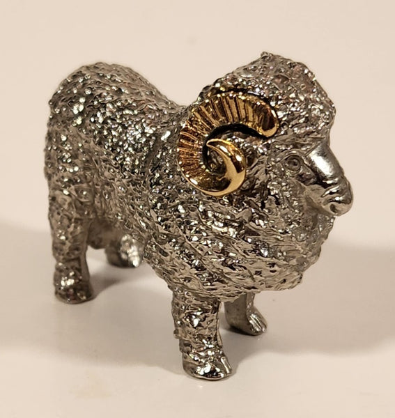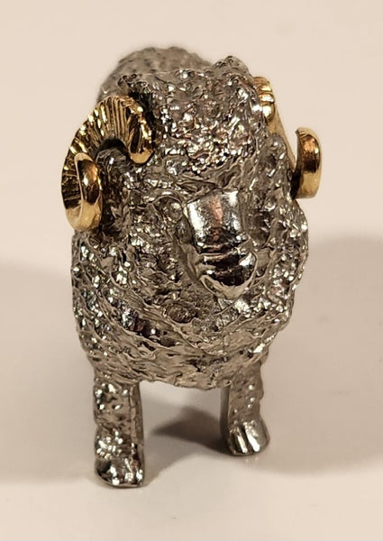 New Zealand Ram Sheep 2 1/4" Silver and Gold Tone Metal Figurine