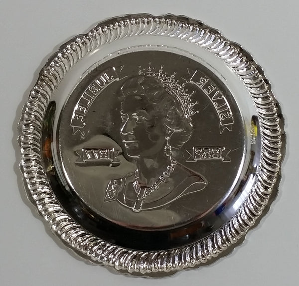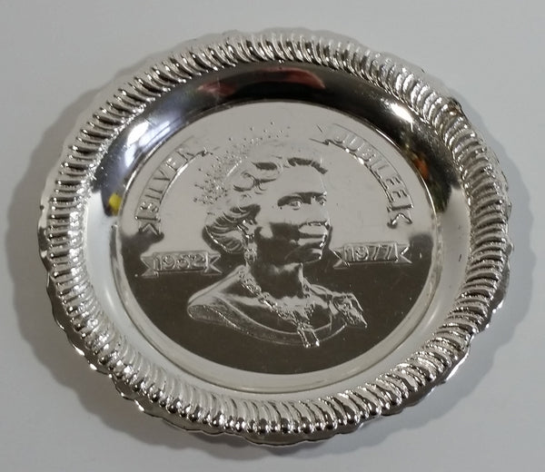 Vintage 1952-1977 Queen Elizabeth II Silver Jubilee Silver Tone Small Round Embossed Dish