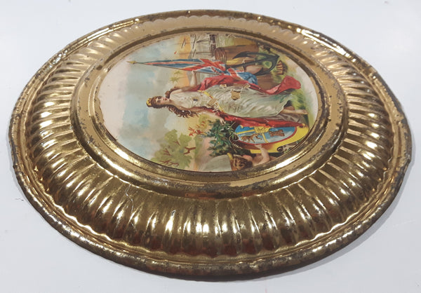 Vintage Queen Victoria Anchor Naval Beach Scene 8 1/8" Brass Toned Metal Plate