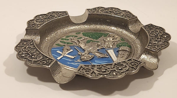 Vintage Dutch Knight with Windmills Enamel Metal Cigarette Ashtray