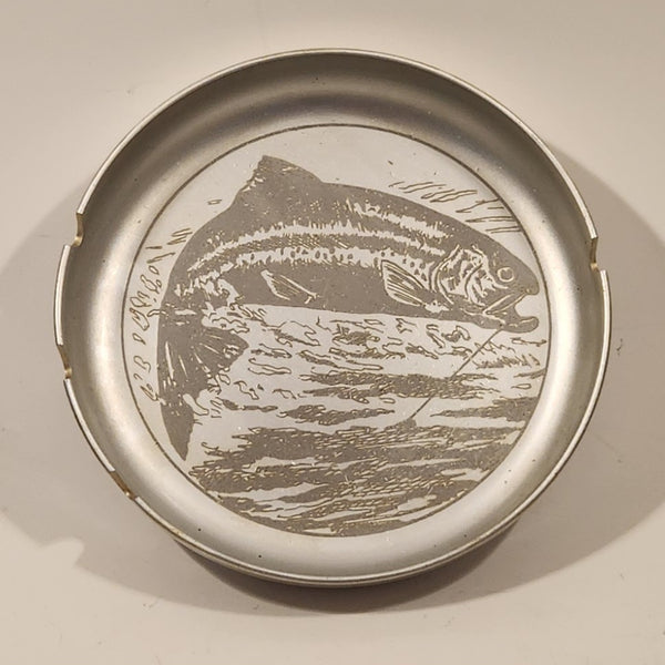 Vintage Hooked Fish Jumping Aluminum Metal Cigarette Ashtray
