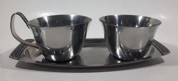 Vintage Japanese Cream and Sugar with Tray Stainless Steel Set