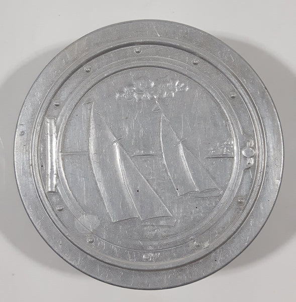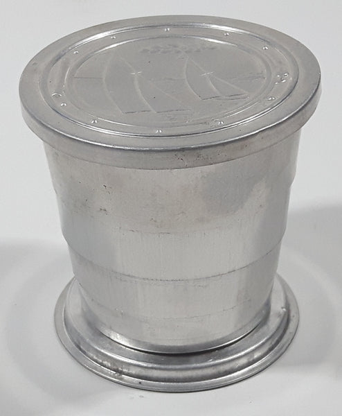 Vintage Sailboat Themed 2 5/8" Tall Embossed Aluminum Metal Expandable and Collapsible Travel Drink Cup with Lid