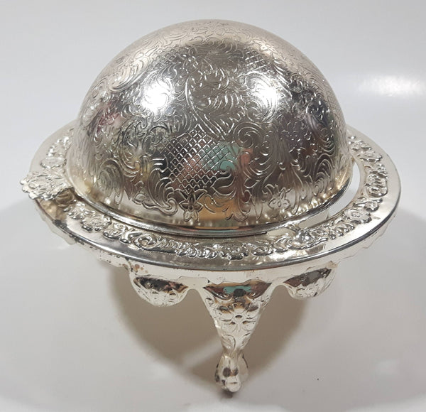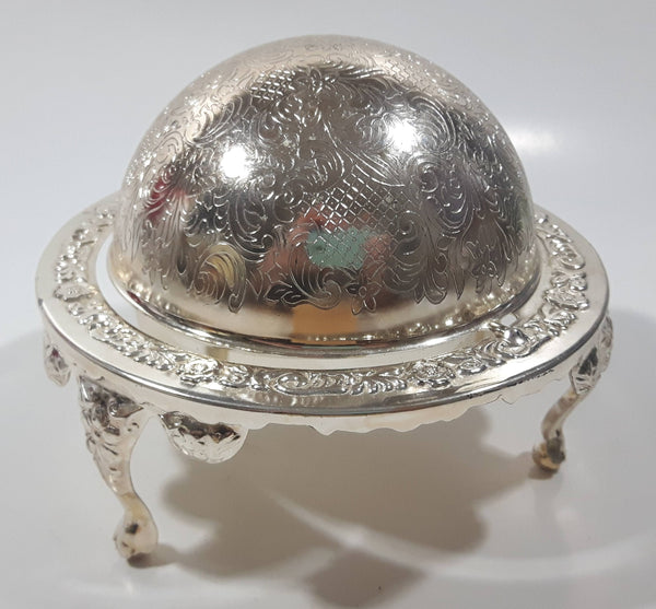 Vintage Silver Plated Dome Roll Top 5 1/4" Diameter Caviar Butter Serving Dish Made in England