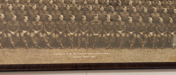August 1942 C. Company, 1st Battalion The Saskatoon Light Infantry (M.G.) in England Black and White Military Group Photo