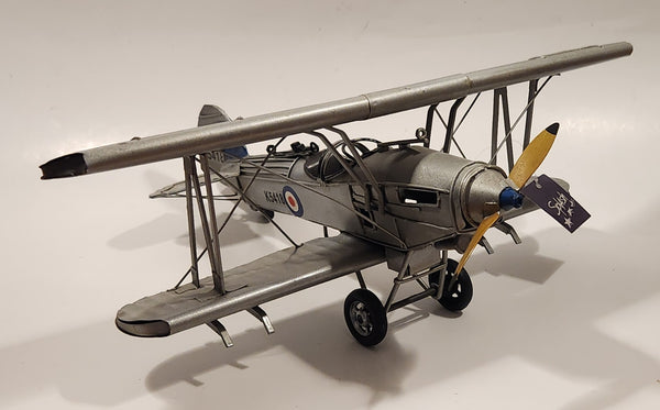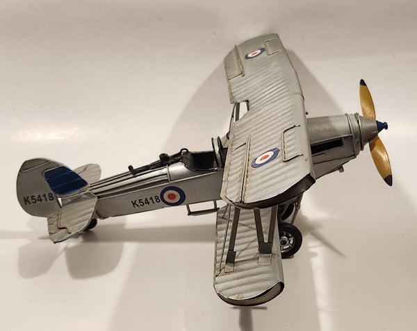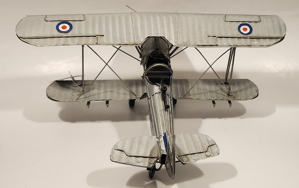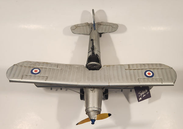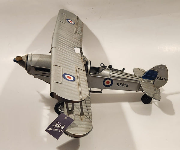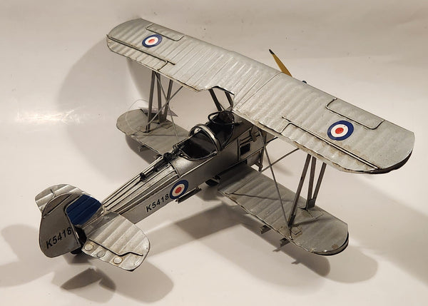 RAF Hawker Hind K5418 Airplane Silver Grey Large 11 3/4" Long Tin Metal Military Aircraft Model