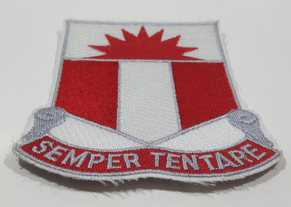 U.S. Army 321st Engineer Battalion Semper Tentare Red and White 3 1/8" x 3 1/2" Fabric Military Insignia Patch Badge