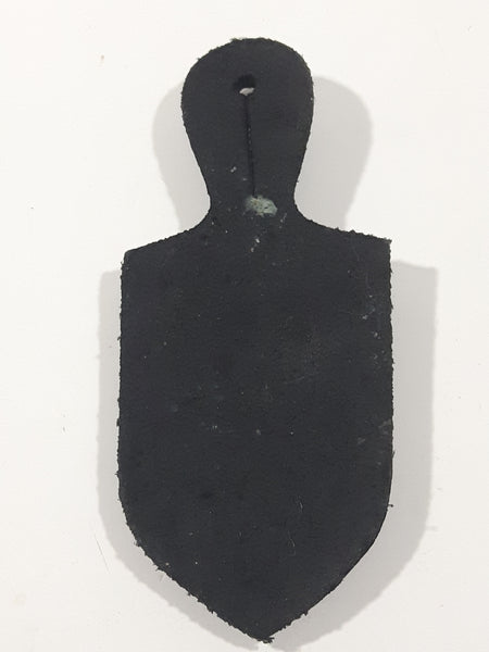 Vintage Bridge Ship Wheel Heraldic Lion 5 Crest Coat of Arms 4" Black Leather Pocket Hanger Badge